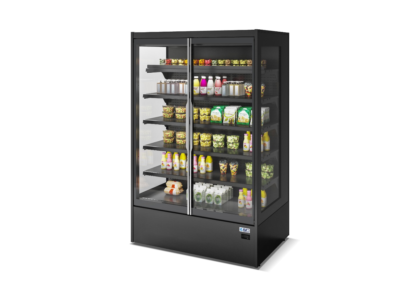| Døre | Hængslede glasdøre |