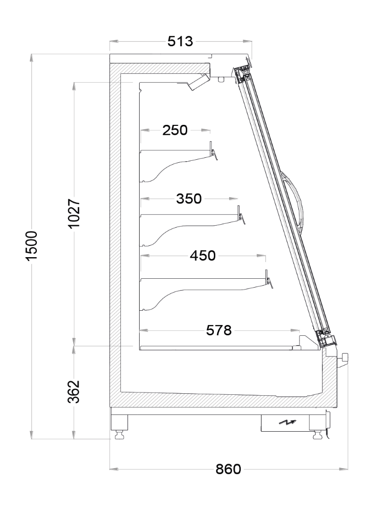 | Endesektion (1875mm) - H x D | 1500 x 860 mm inkl. fender |