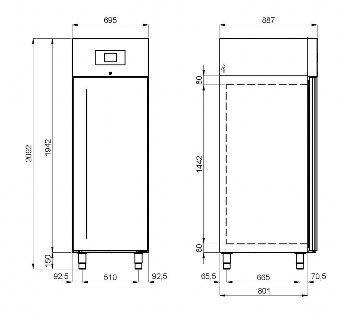 | Udv. mål - L x D x H | 695 x 887 x 2092 mm |