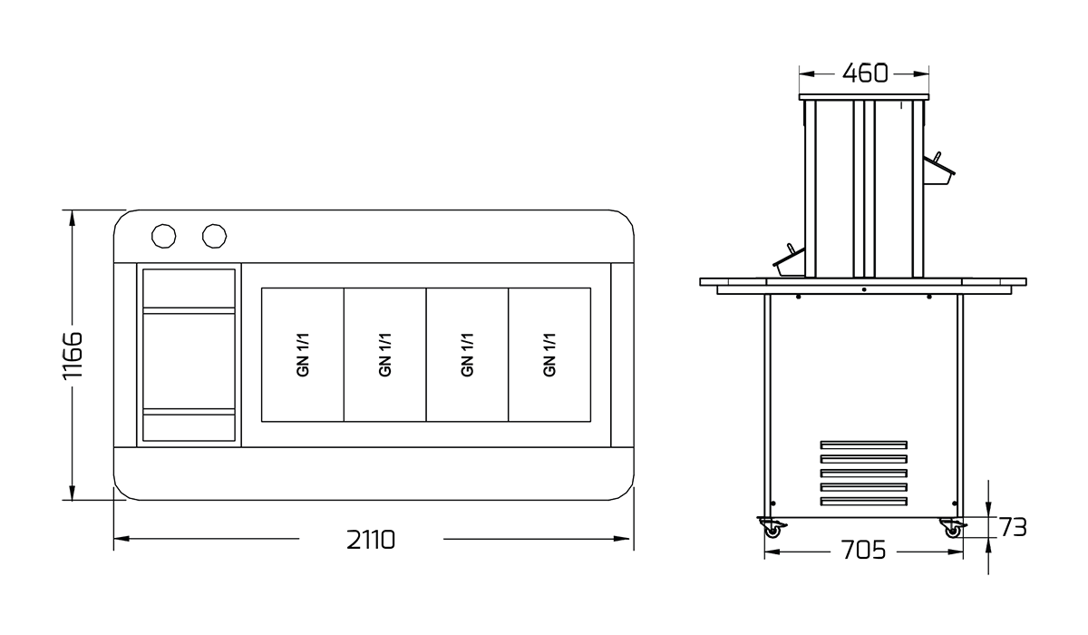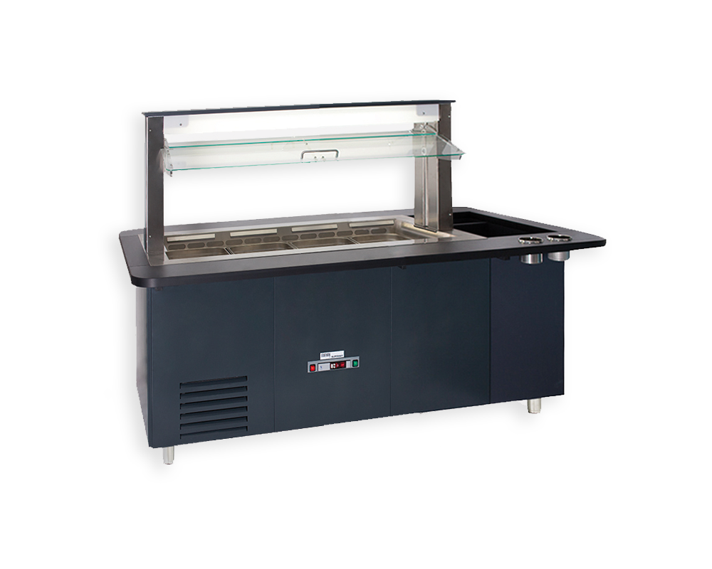 | Låg | Mekanisk glaslåg/Sneezeguard: Vælg mellem 1 eller 2 sider |