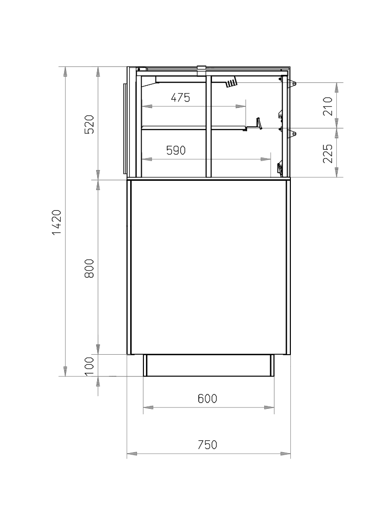 | Udv. mål - H x D | 1420 x 750 mm |